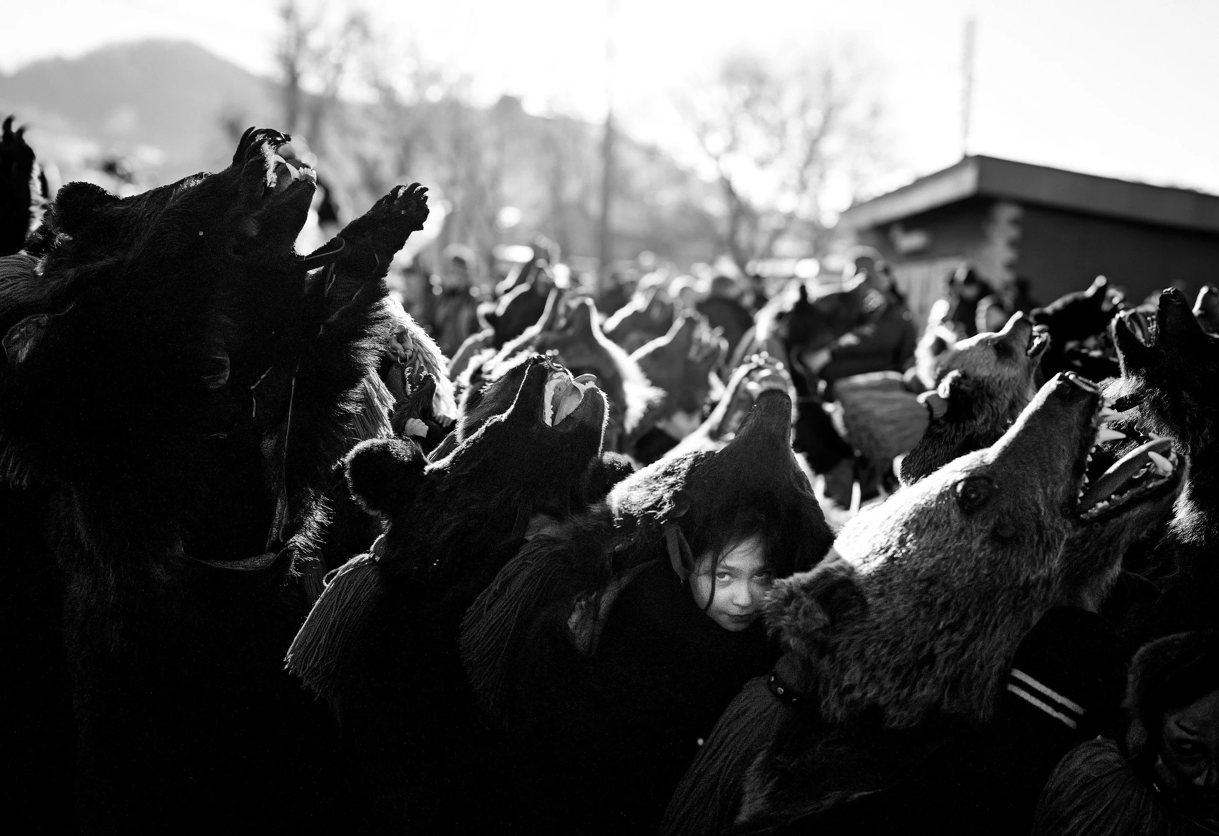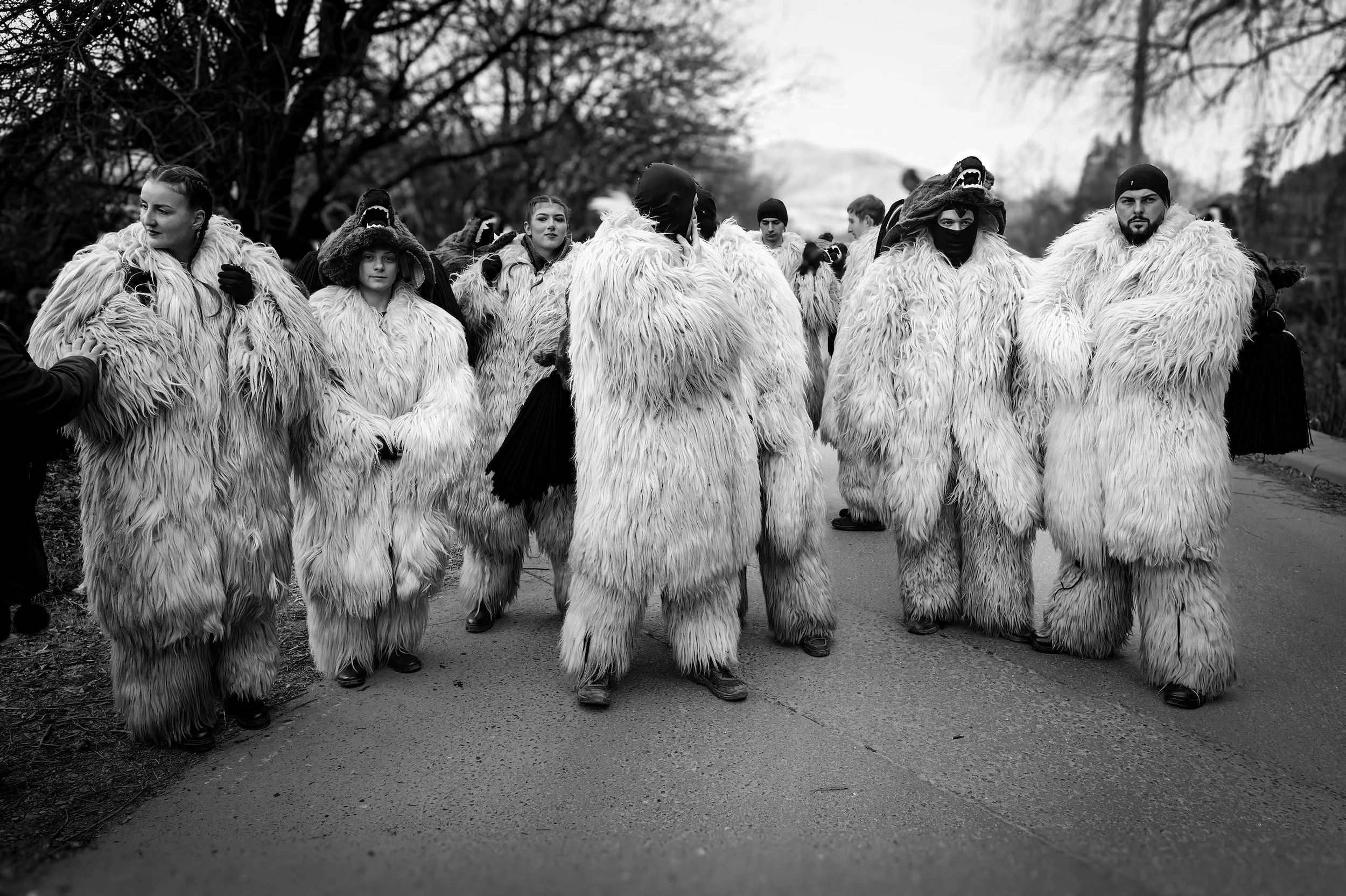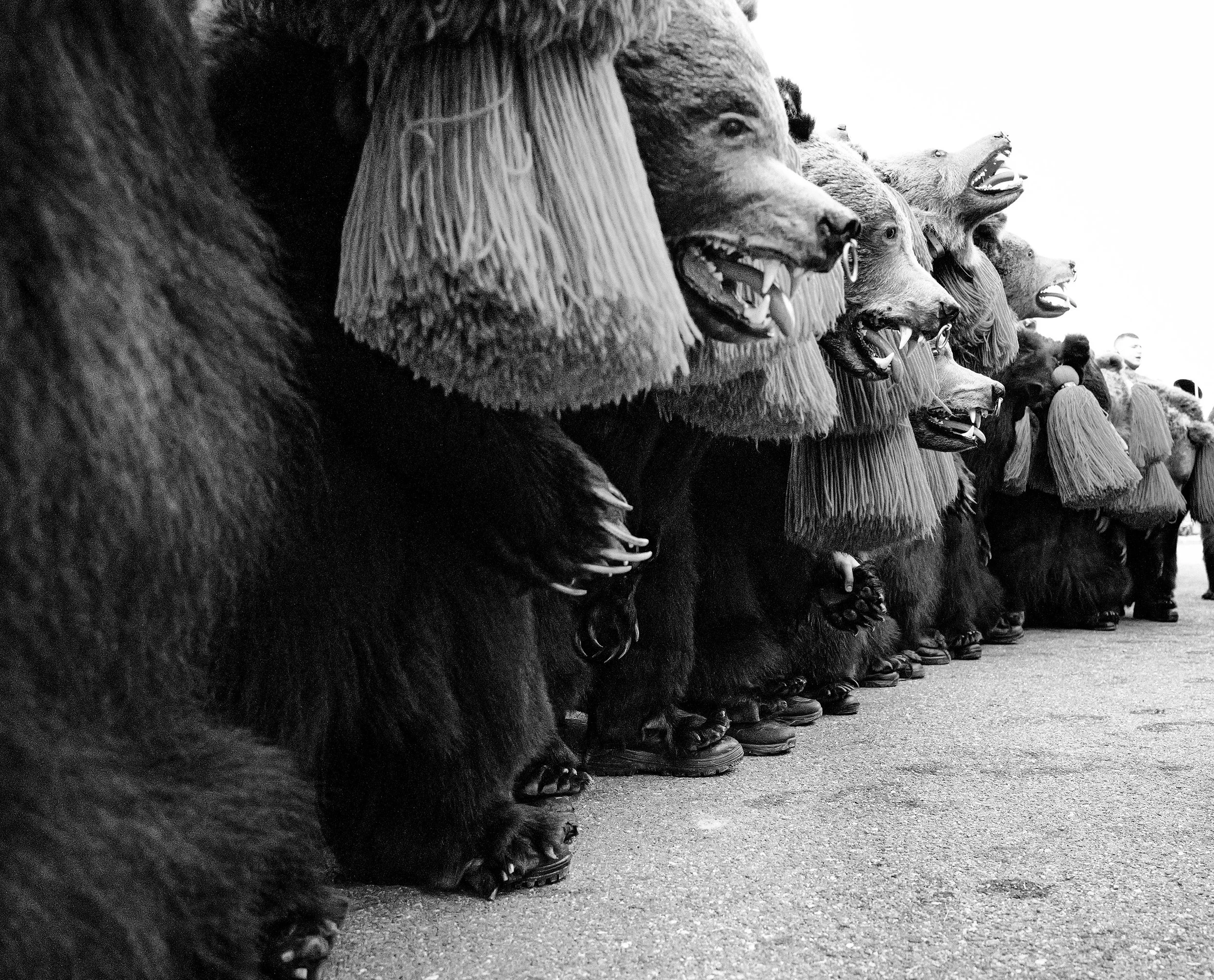 "Black and white was a deliberate choice to strip away the modern world and focus on the aesthetics of resistance. It emphasizes the raw, tactile textures. The thirty plus kilogram bear pelts. The sweat of exhaustion on the dancers' faces. The harsh, biting winter light of the Carpathians."